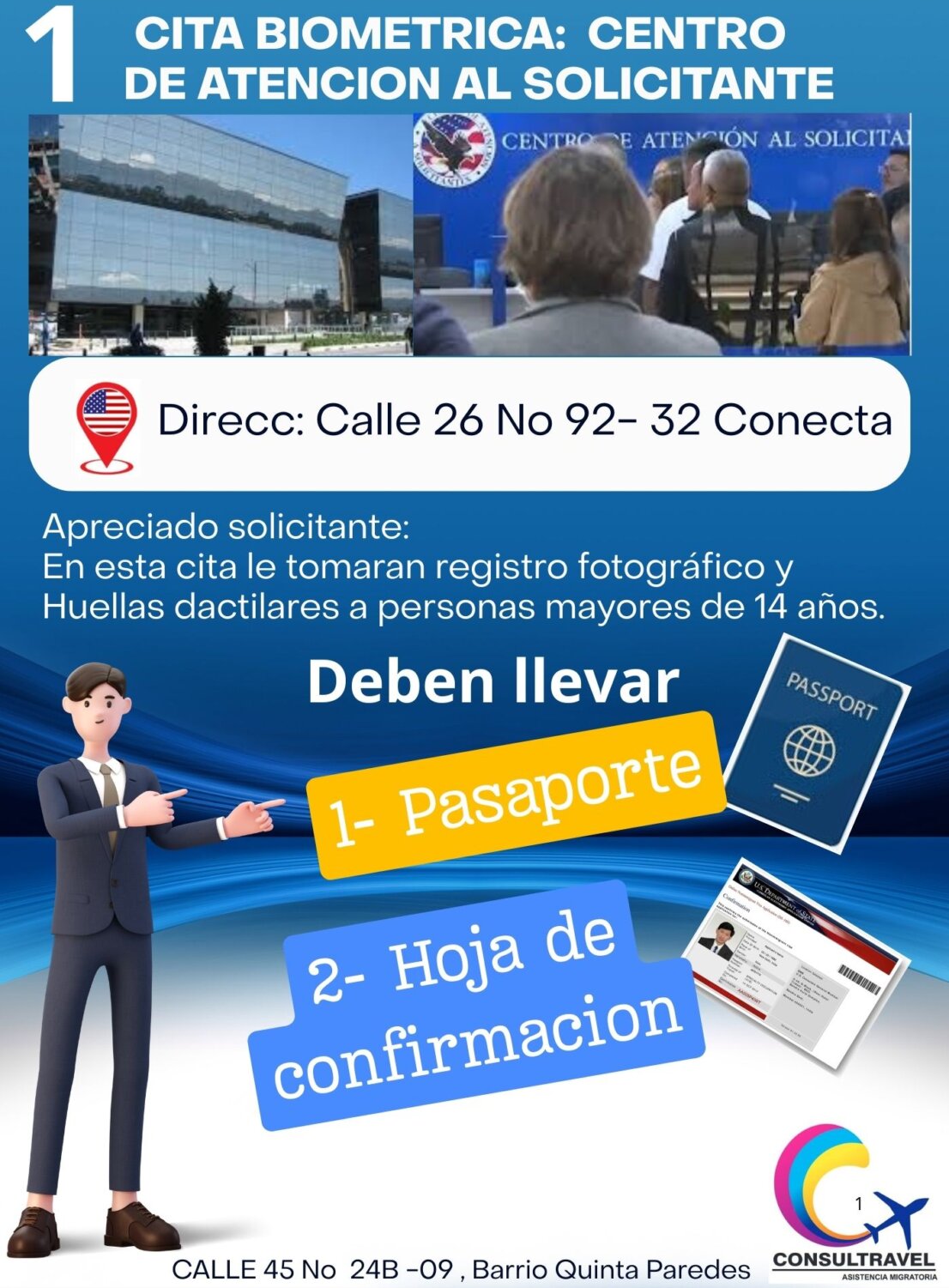 Señor Aplicante tenga en cuenta las ilustraciones graficas. Donde le especifican que documentos debe llevar en la Primera cita.