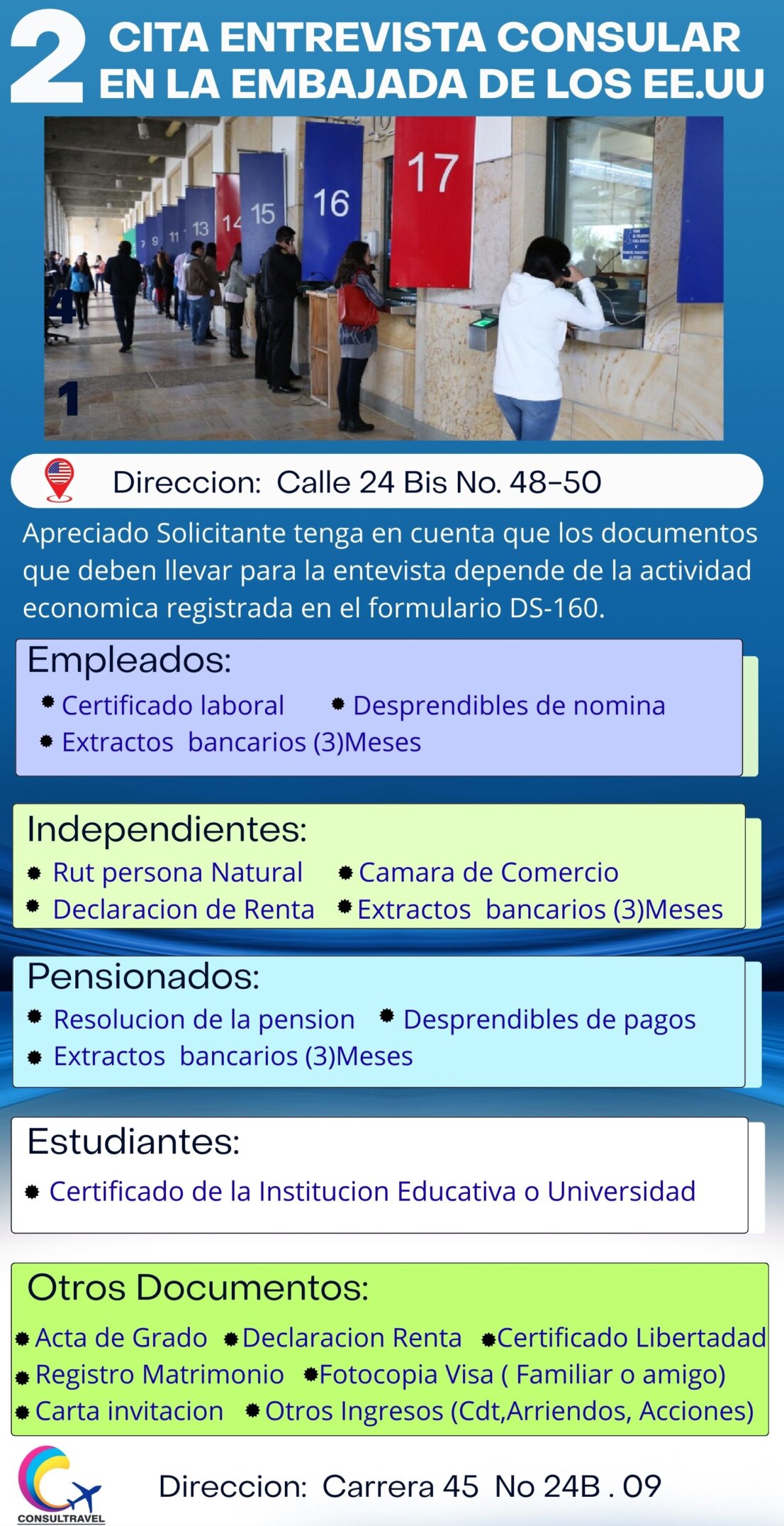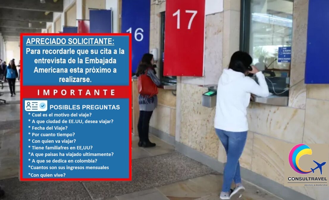 Señor Aplicante tenga en cuenta las ilustraciones graficas. Donde le indica un cuestionario de posibles preguntas realizadas por Agente Consular.